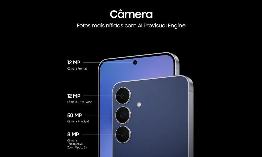 - Software: One UI 8, Android 16, 7 anos de atualizações